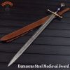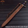 Marvelous Handmade Damascus Steel Medieval Sword with Leather Sheath