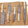 High Carbon Steel Knife Set Handmade Damascus Chef Knives Camel Bone Handles with Leather Kit Roll Bag