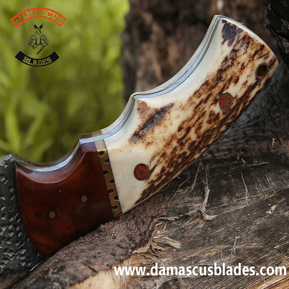 Damascus Blades | Forged Handmade Tactical Hunting Stag Horn Tracker Knife Material Used For This Blade Low Carbon and High Carbon Steel 1095 with 15N20 Mixture Welded, Forged & Hammered Several Times To Obtain Up To 352 Layers.